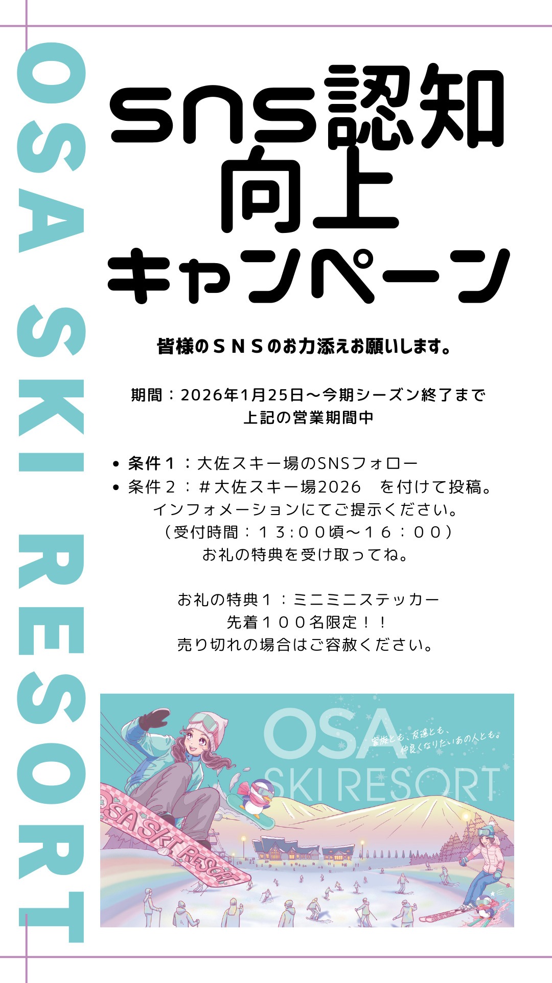 「#大佐スキー場2026 sns認知向上キャンペーン 皆さまのSNSの力をお貸しください。」