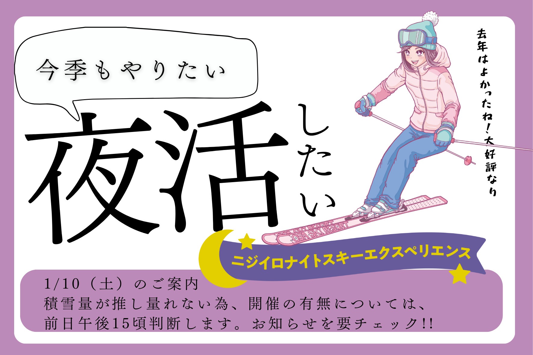 上記のニジイロナイトスキーエクスペリエンスが開催できるかどうかの判断を